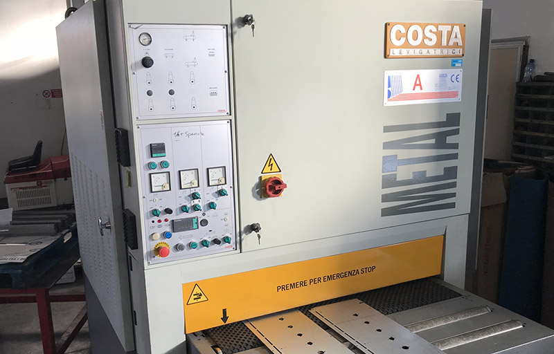 Tutti i particolari inox satinati, in particolare quelli estetici, vengono accuratamente sbavati su apposita sbavatrice COSTA per poi passare alle successive fasi di piegatura e stampaggio in modo da prevenire scarti e velocizzare la produzione.